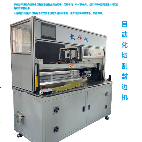 超聲波切割封邊機:又稱空調濾芯切邊機,空調濾芯切割封邊同步機,超聲波封邊機,超聲波焊接機等,本機根據布類產品設計及制作,可切割和封邊同步完成,可反復切割和封邊,適合應用于空調濾芯切割和封邊,活性炭濾芯切割封邊,或者無紡布材質產品,尼龍材質,纖維布料產品等產品。